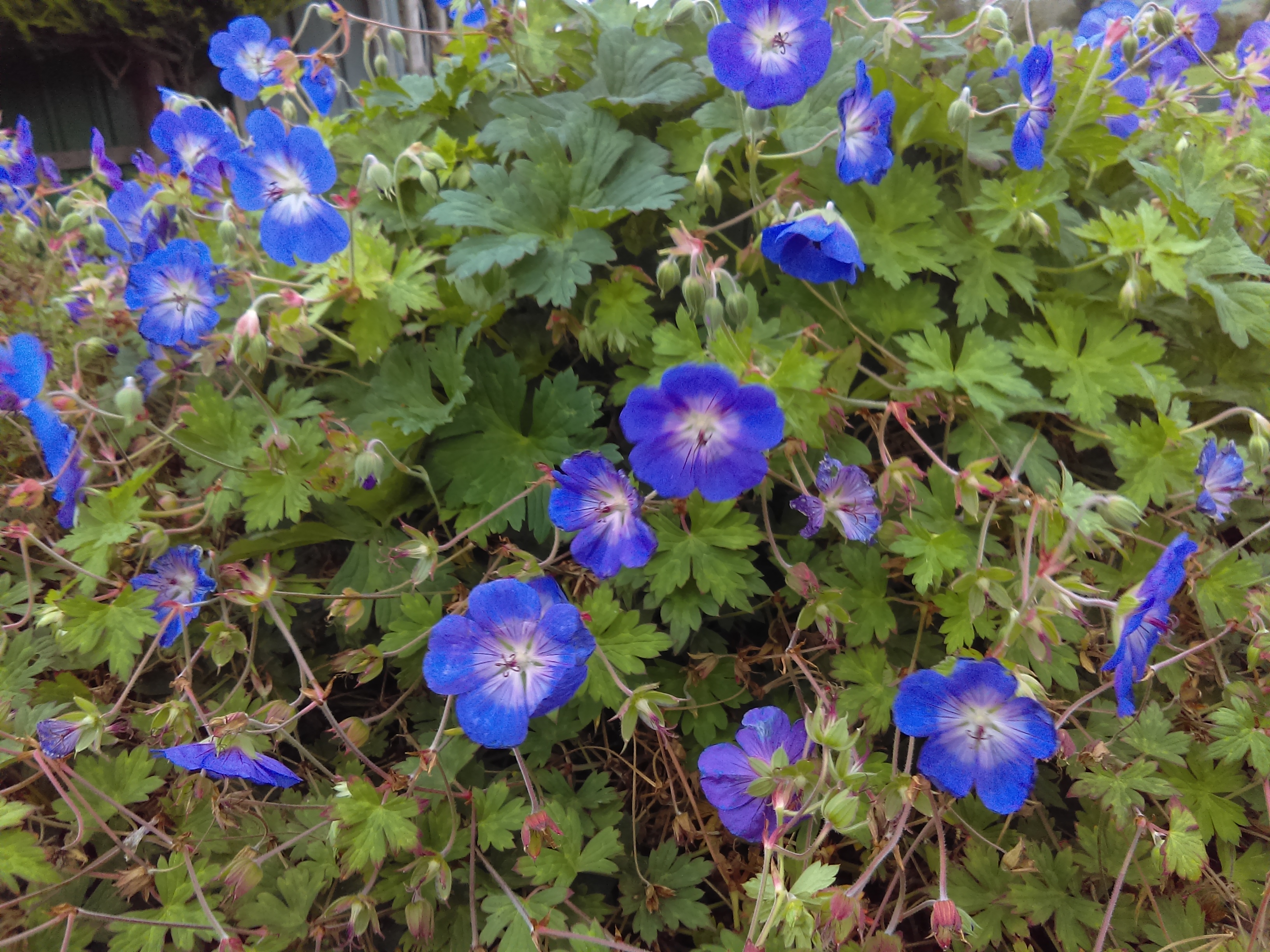Cranesbill. A mat of almost evergreen deeply cut and pointed light gre